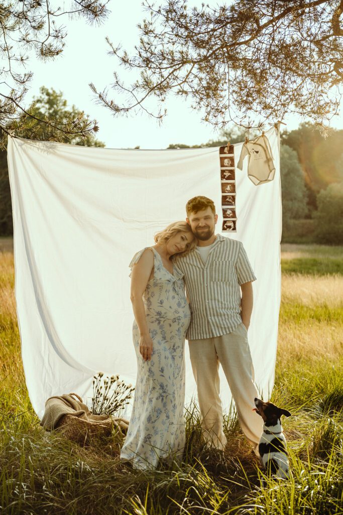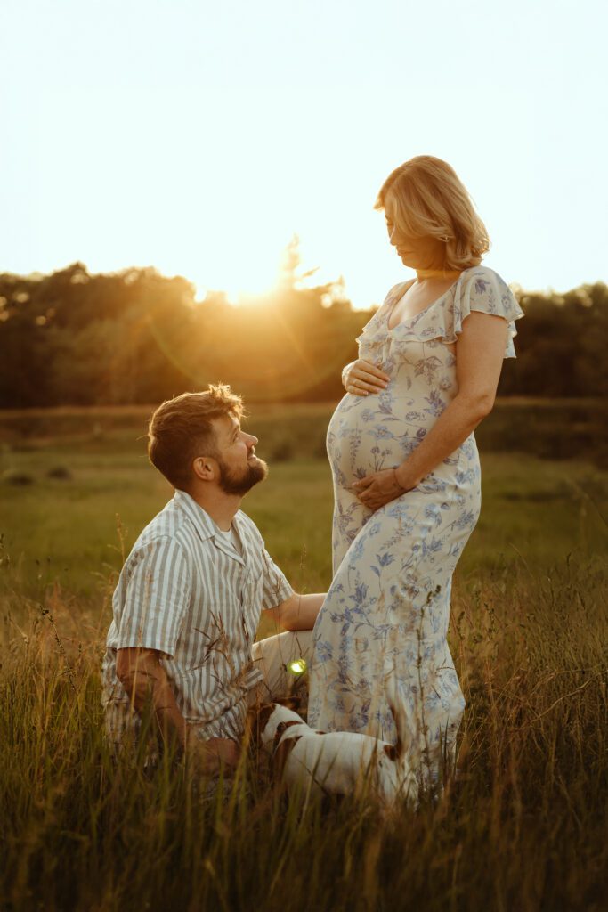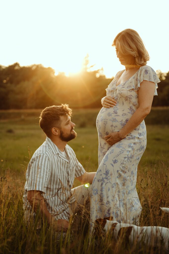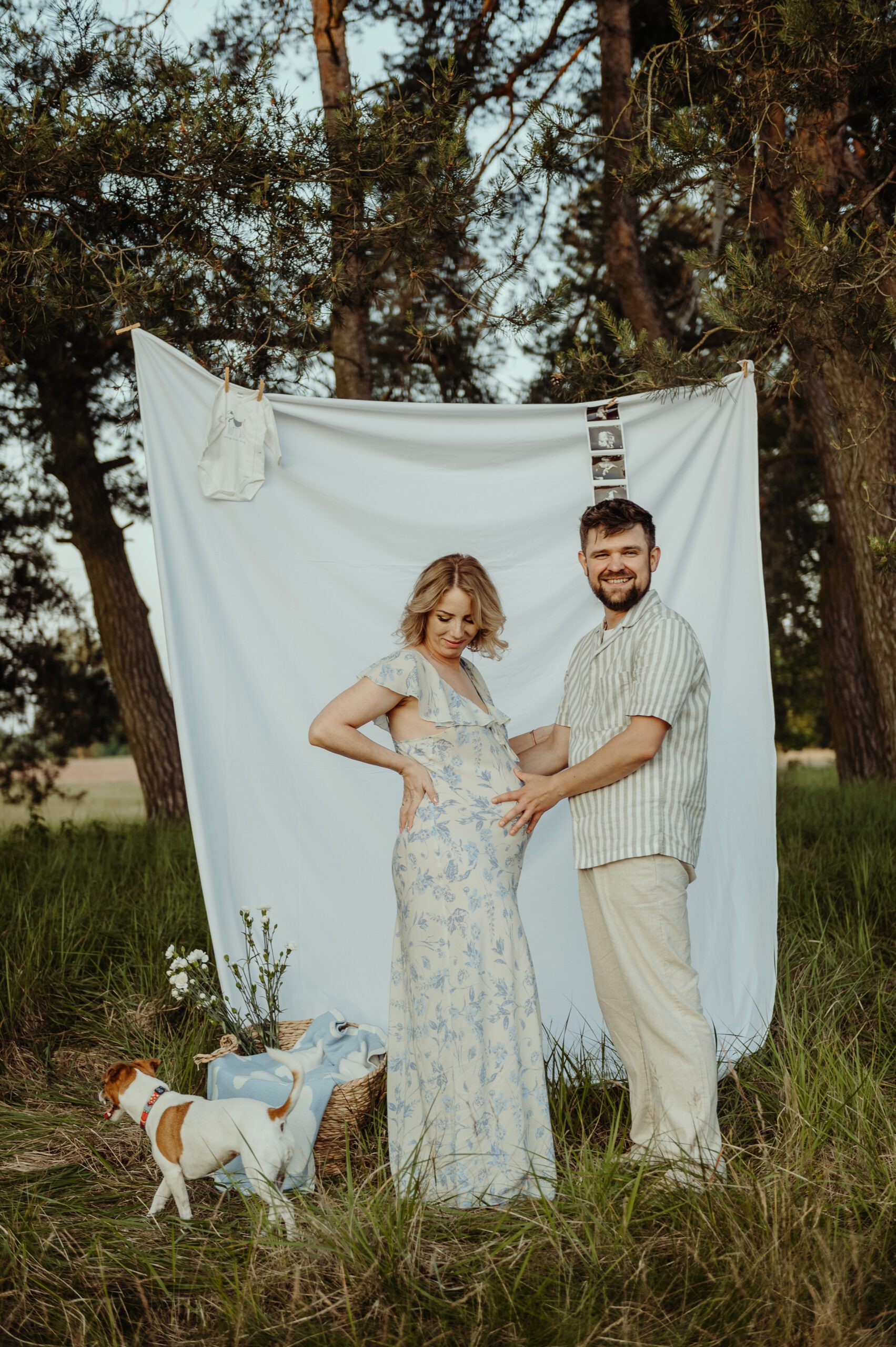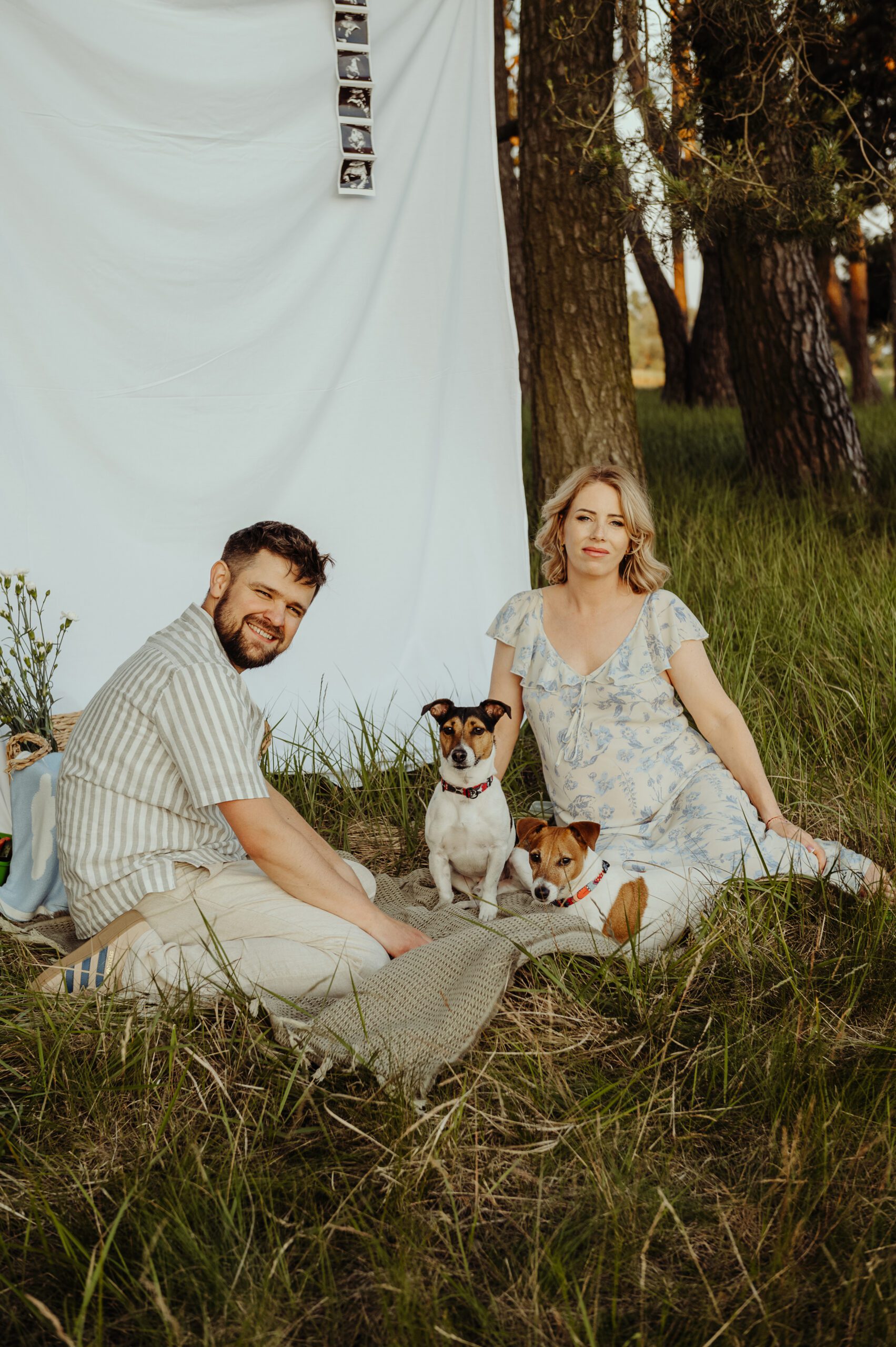 Czas oczekiwania to jeden z najpiękniejszych momentów w życiu. Mam ogromną przyjemność podzielić się z Wami efektami magicznej sesji ciążowej Dominiki i Rafała, która odbyła się w sercu natury, w malowniczych okolicach Zaniemyśla nad Wartą. Spotkaliśmy się tuż przed zachodem słońca, aby w pełni wykorzystać ciepłe, miękkie światło złotej godziny. To właśnie ono nadało kadrom niezwykłej, intymnej atmosfery. Dominika, w zwiewnej sukience podkreślającej jej piękny brzuszek, wyglądała zjawiskowo. Wraz z Rafałem stworzyli obraz pełen miłości, czułości i radosnego wyczekiwania na nowego członka rodziny. Ta sesja była wyjątkowa również dlatego, że towarzyszyły nam ich dwa urocze psy, które są niezwykle ważną częścią rodziny. Uchwycenie ich wspólnej relacji, pełnej swobody i radości, było czystą przyjemnością. To dowód na to, że sesja ciążowa z psami to wspaniały pomysł na stworzenie autentycznej i niezapomnianej pamiątki.