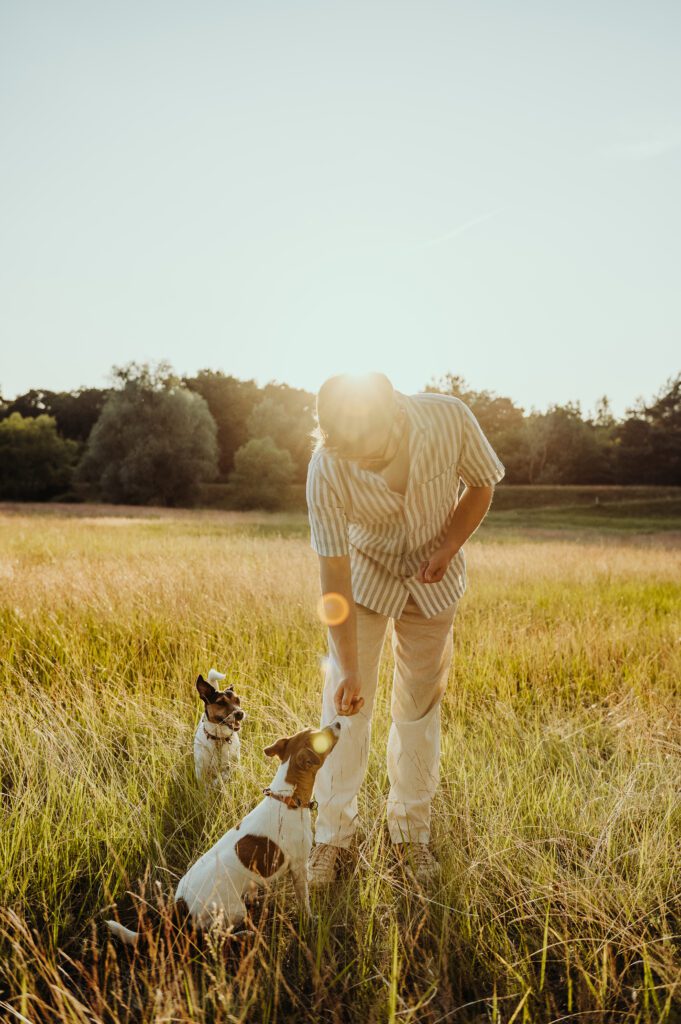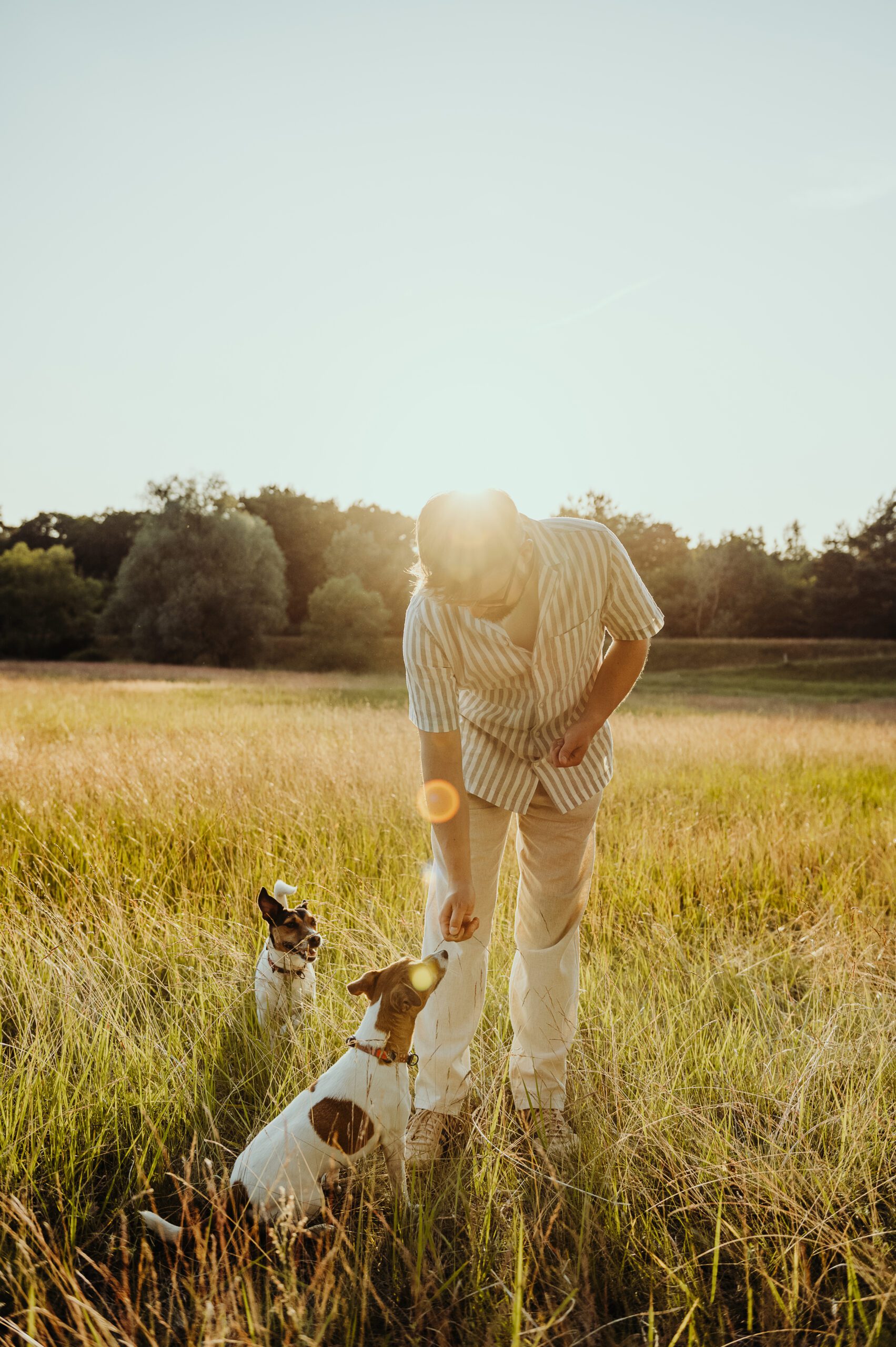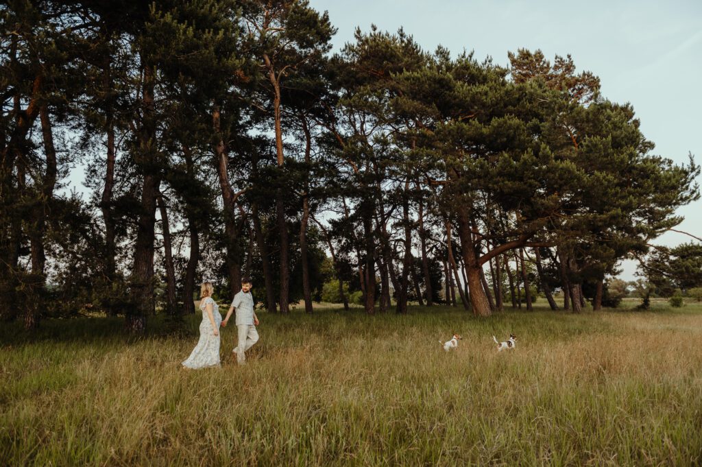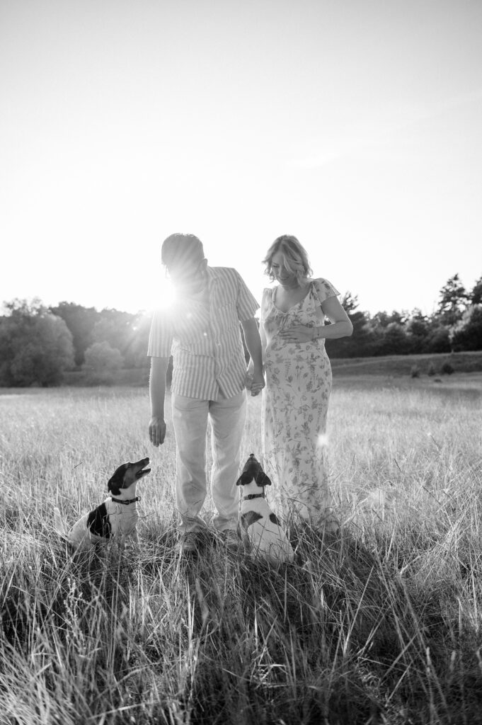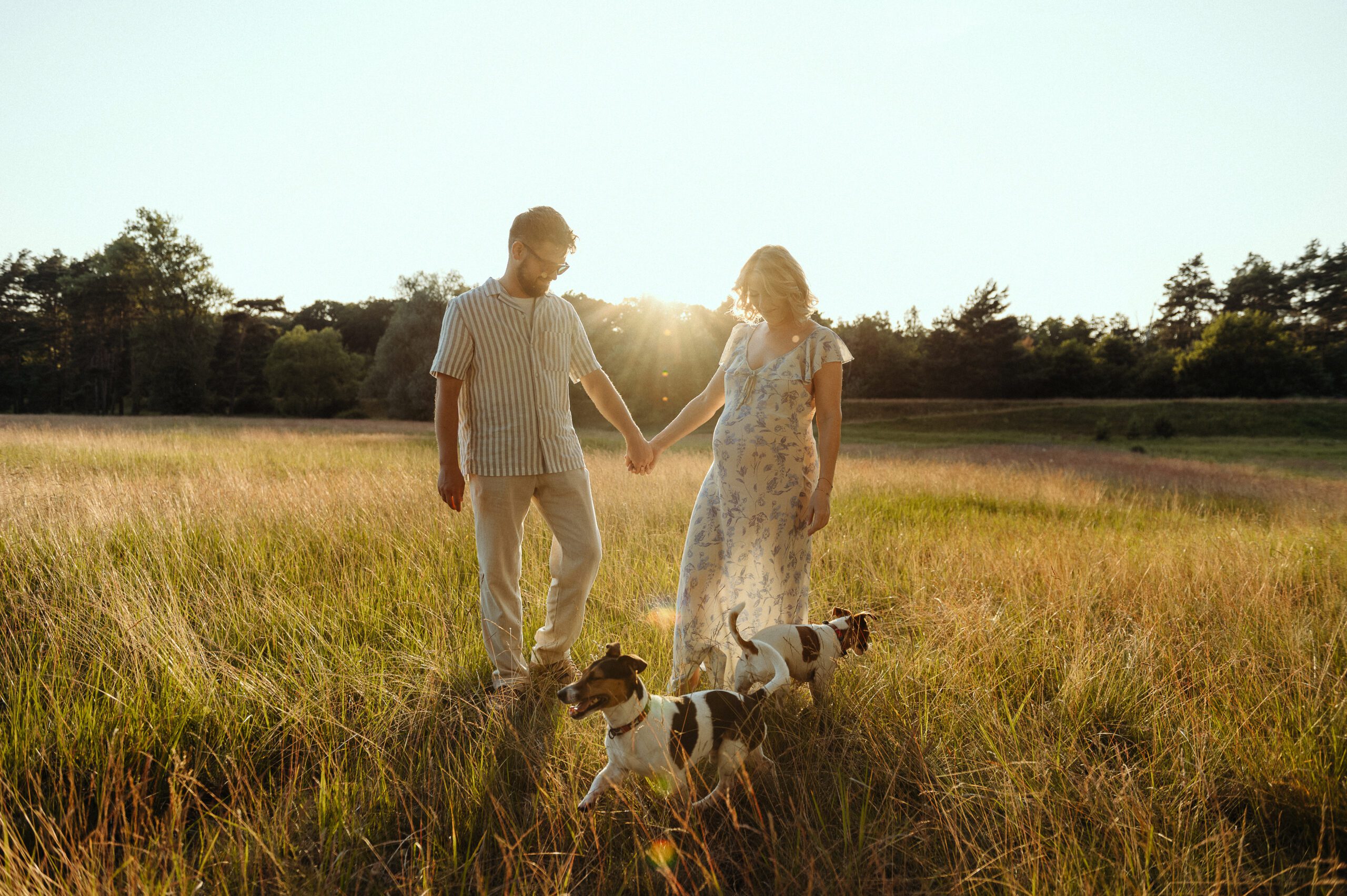 Czas oczekiwania to jeden z najpiękniejszych momentów w życiu. Mam ogromną przyjemność podzielić się z Wami efektami magicznej sesji ciążowej Dominiki i Rafała, która odbyła się w sercu natury, w malowniczych okolicach Zaniemyśla nad Wartą. Spotkaliśmy się tuż przed zachodem słońca, aby w pełni wykorzystać ciepłe, miękkie światło złotej godziny. To właśnie ono nadało kadrom niezwykłej, intymnej atmosfery. Dominika, w zwiewnej sukience podkreślającej jej piękny brzuszek, wyglądała zjawiskowo. Wraz z Rafałem stworzyli obraz pełen miłości, czułości i radosnego wyczekiwania na nowego członka rodziny. Ta sesja była wyjątkowa również dlatego, że towarzyszyły nam ich dwa urocze psy, które są niezwykle ważną częścią rodziny. Uchwycenie ich wspólnej relacji, pełnej swobody i radości, było czystą przyjemnością. To dowód na to, że sesja ciążowa z psami to wspaniały pomysł na stworzenie autentycznej i niezapomnianej pamiątki.
