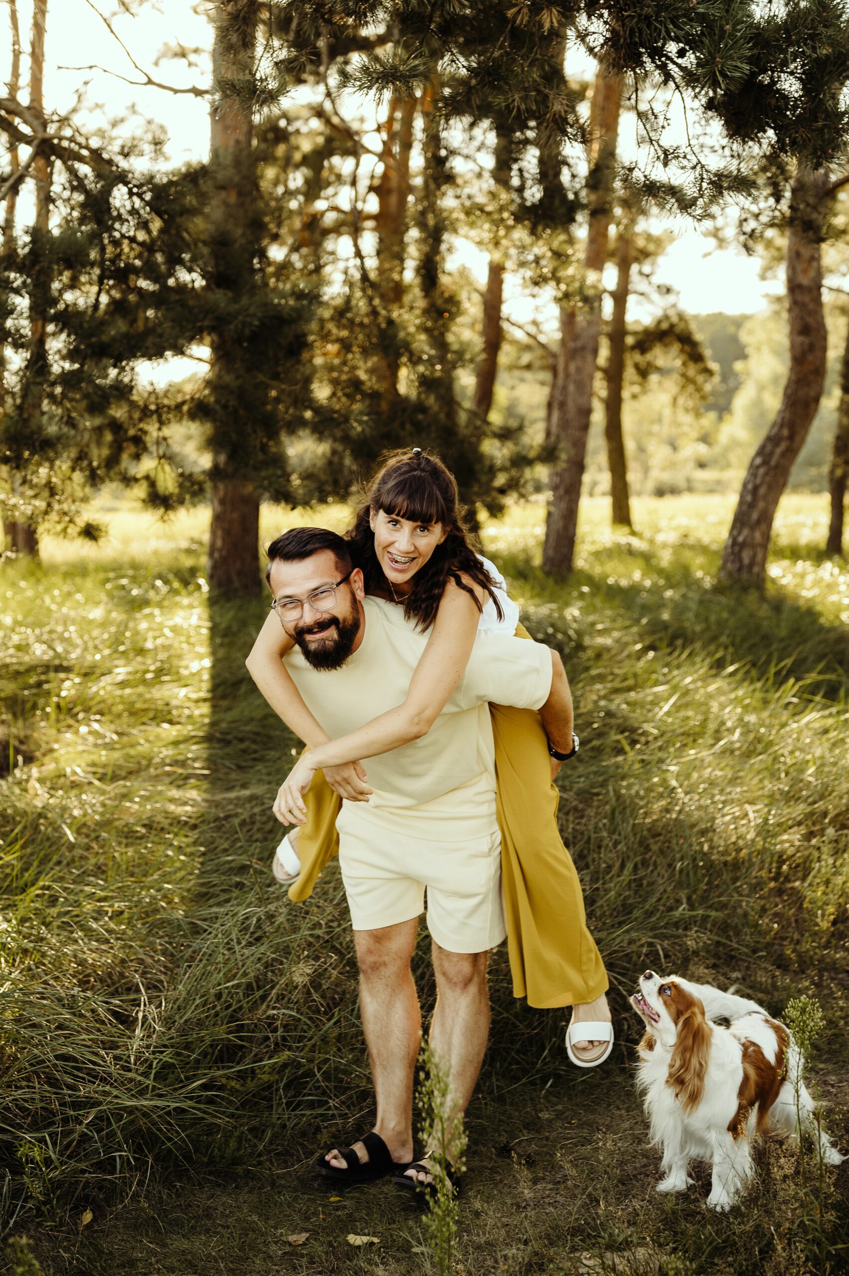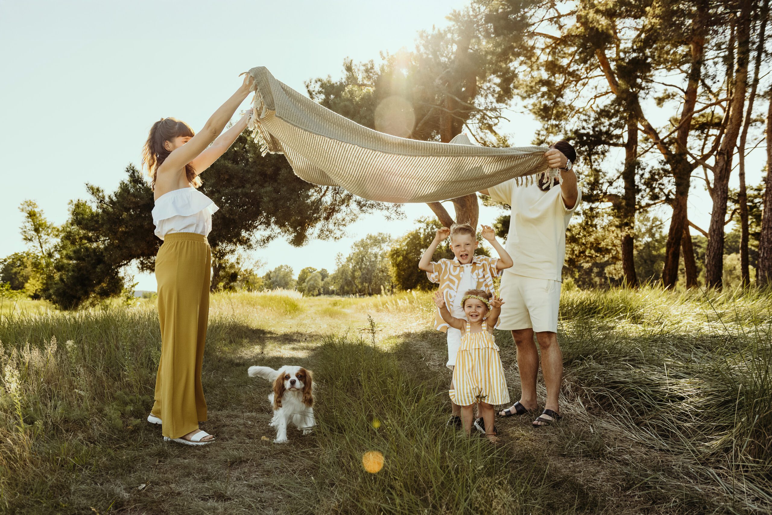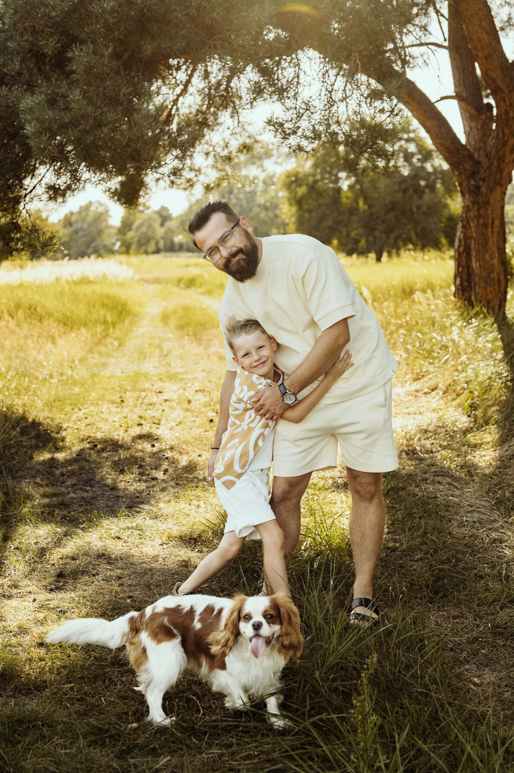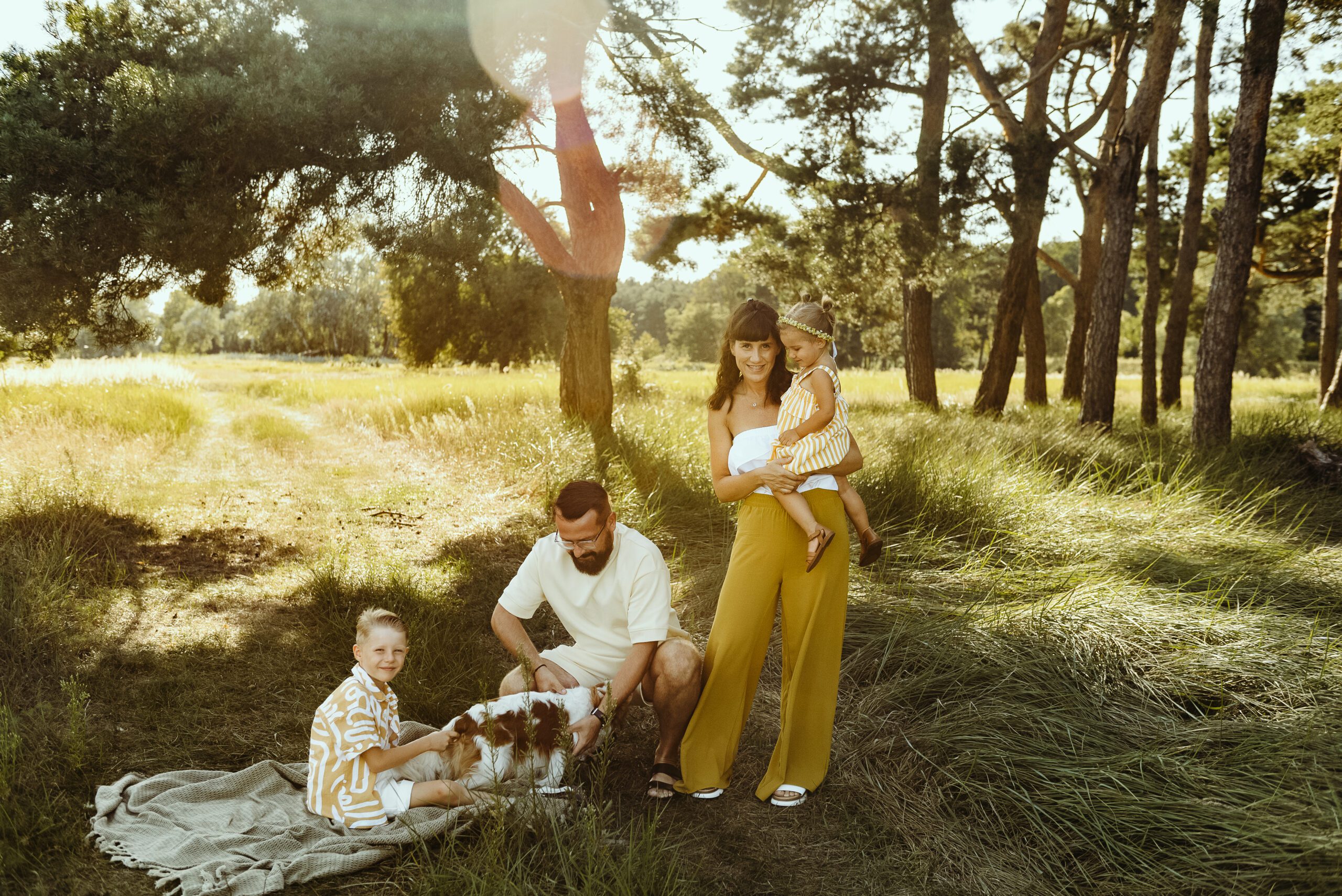 W sesji wziął udział również czworonożny członek rodziny, co wniosło jeszcze więcej radości i dynamiki. Sesja rodzinna z psem to zawsze świetny pomysł na uchwycenie pełnego obrazu Waszej codzienności i miłości.