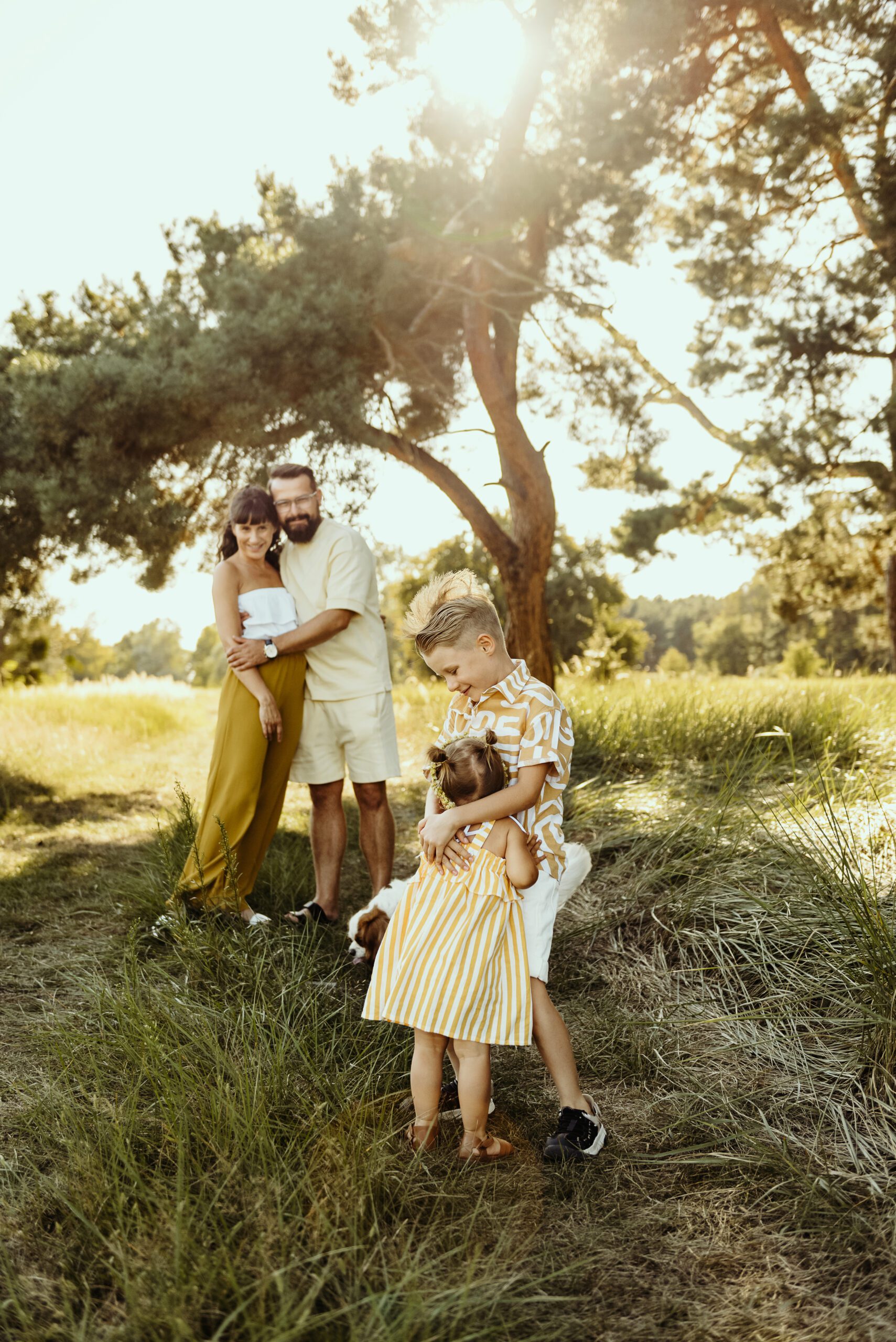 Przedstawiam Wam historię pełną słońca, śmiechu i beztroski, której bohaterami są Beata, Tomek oraz ich wspaniałe dzieci – Orest i Flawia. Na miejsce tej wyjątkowej, rodzinnej sesji zdjęciowej wybraliśmy malownicze i dzikie tereny nieopodal Zaniemyśla, gdzie rzeka Warta tworzy przepiękne tło dla naturalnych kadrów. Zależało nam na uchwyceniu autentycznych emocji i prawdziwej bliskości, dlatego postawiliśmy na sesję w plenerze, w otoczeniu przyrody. Było mnóstwo zabawy, przytulania i spontanicznych momentów, które najlepiej oddają charakter tej cudownej rodziny.