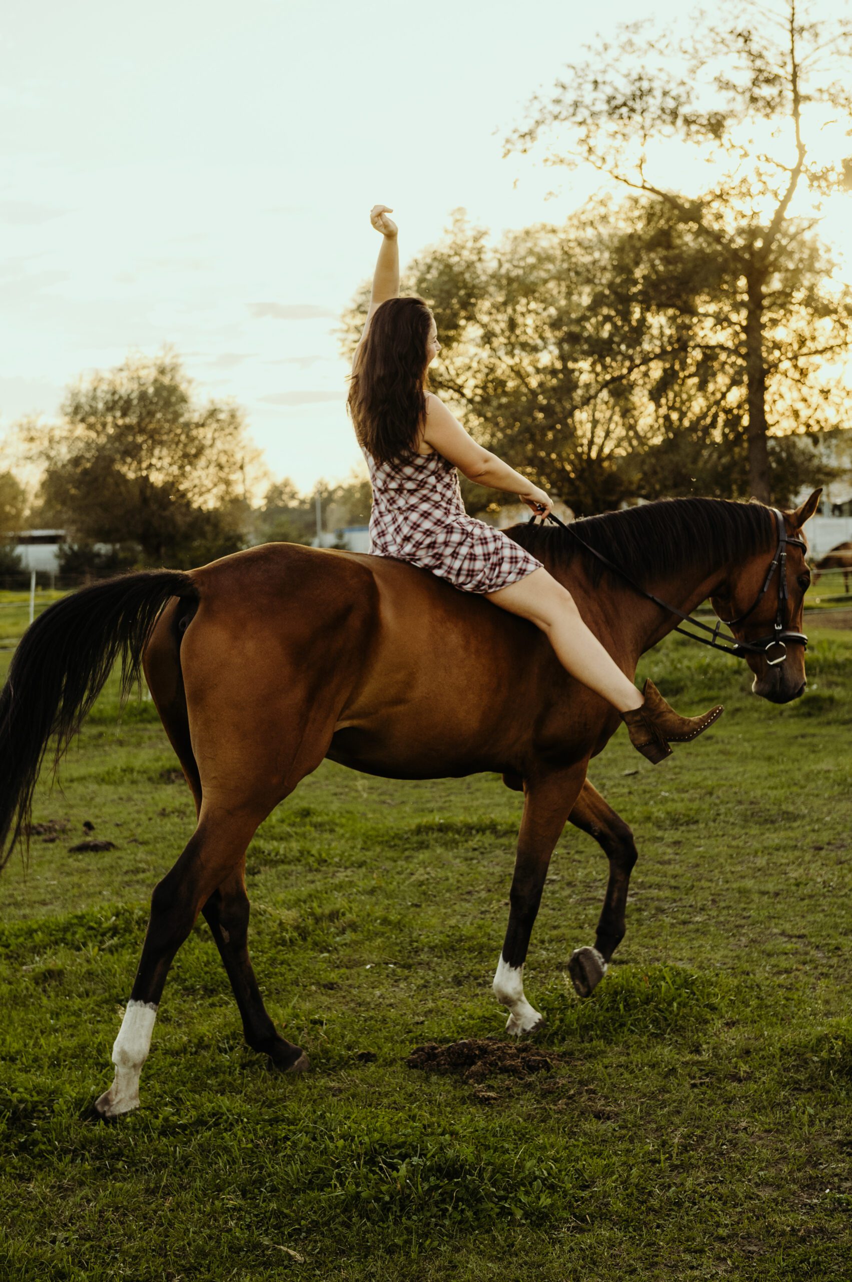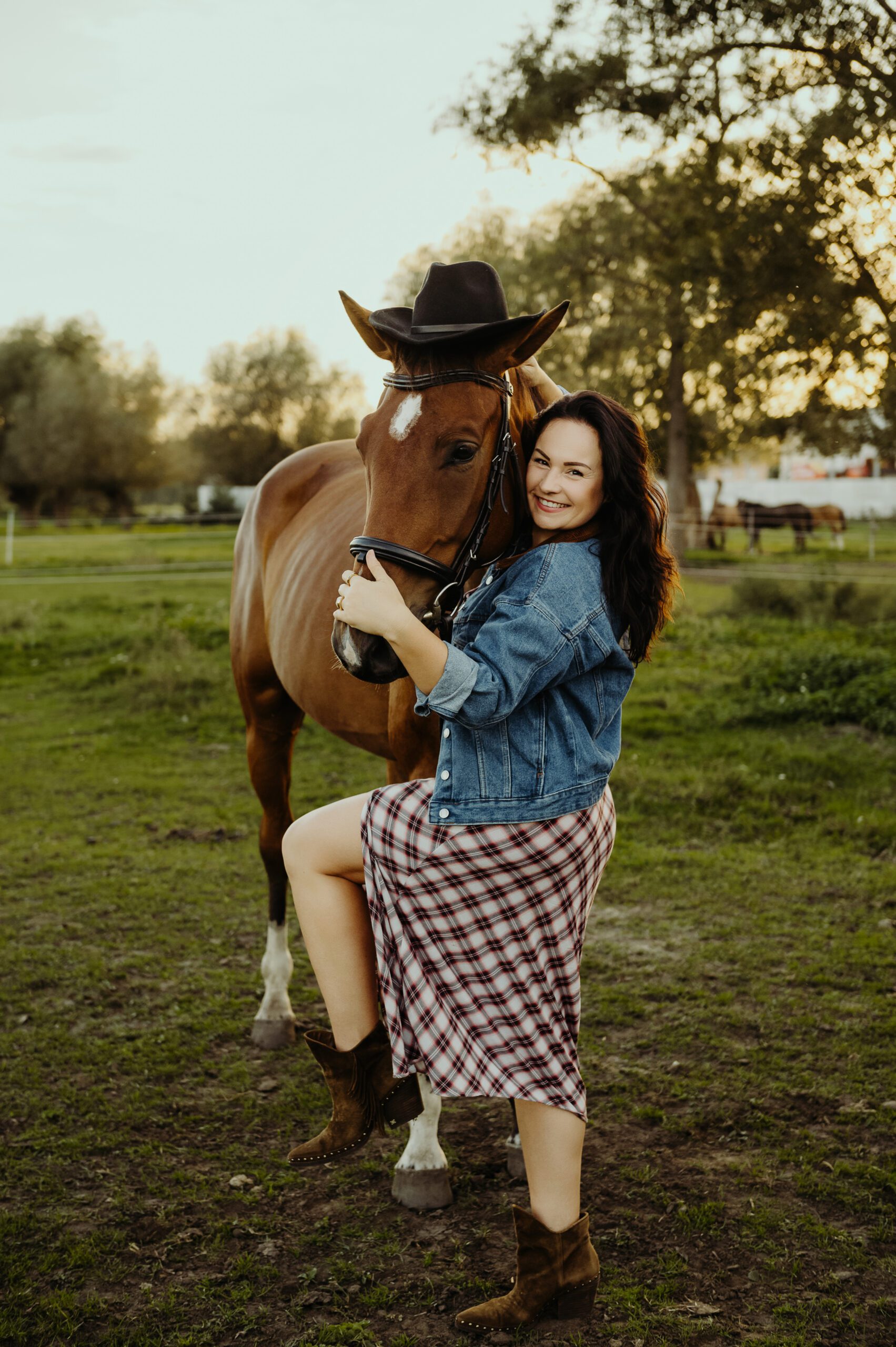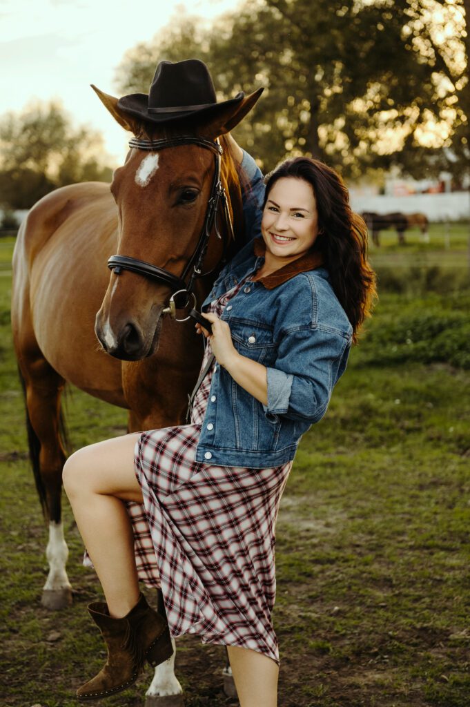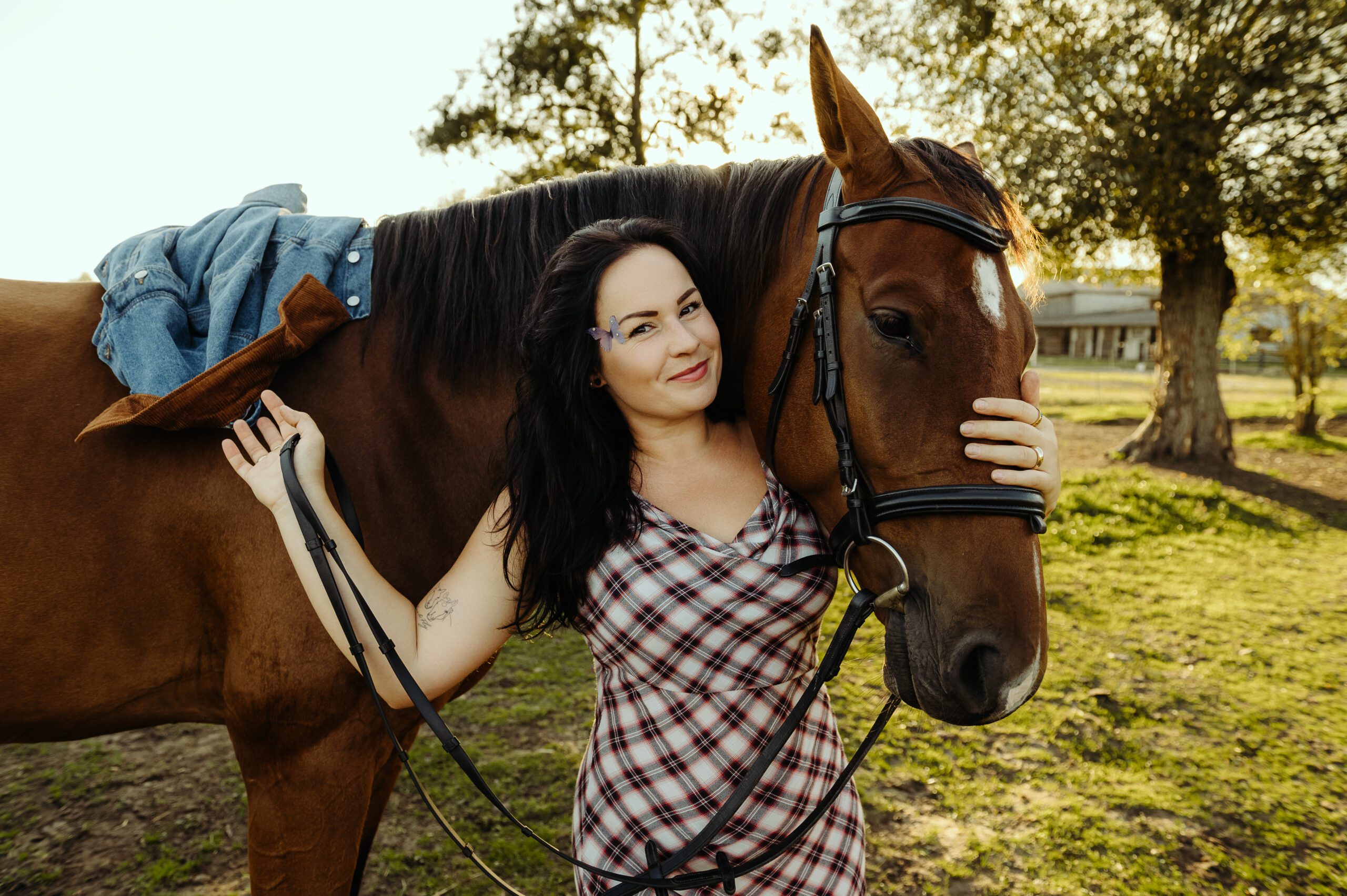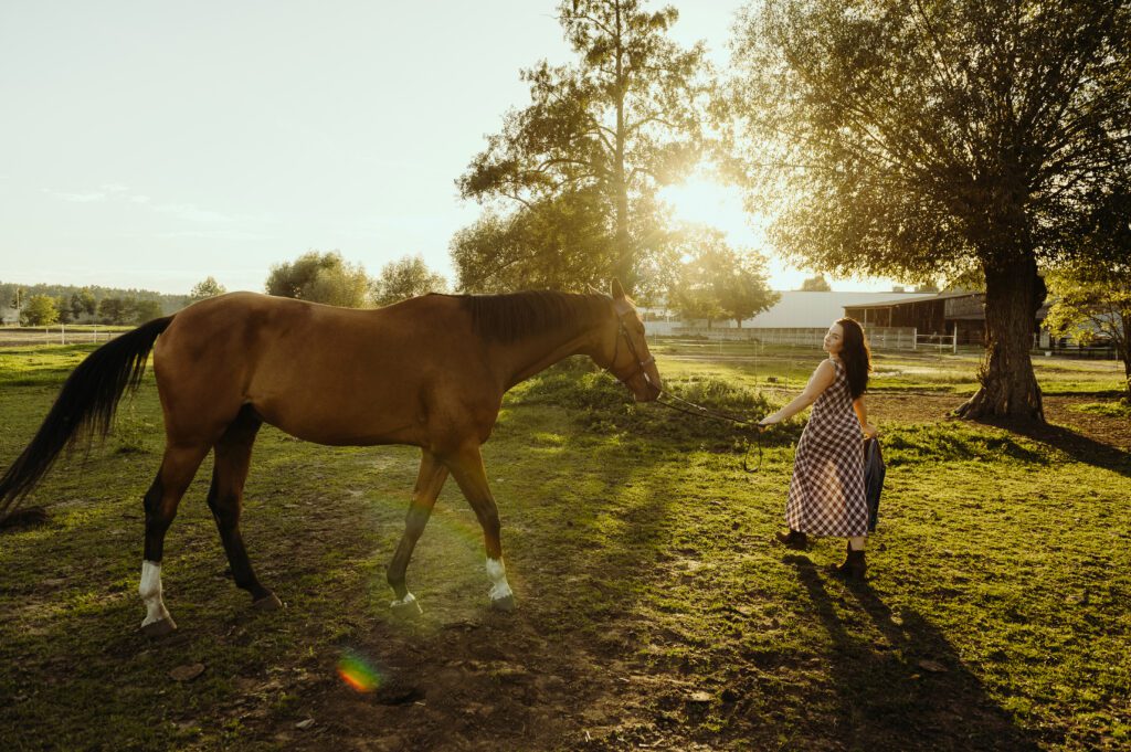 Jest taki moment na przełomie lata i jesieni, kiedy światło słońca staje się niezwykle miękkie i maluje wszystko nasyconymi odcieniami złota. To idealna pora na uchwycenie prawdziwej magii w kadrach. Właśnie w takiej scenerii odbyła się wyjątkowa, indywidualna sesja zdjęciowa Darii z jej dwoma wspaniałymi przyjaciółmi – jej końmi.